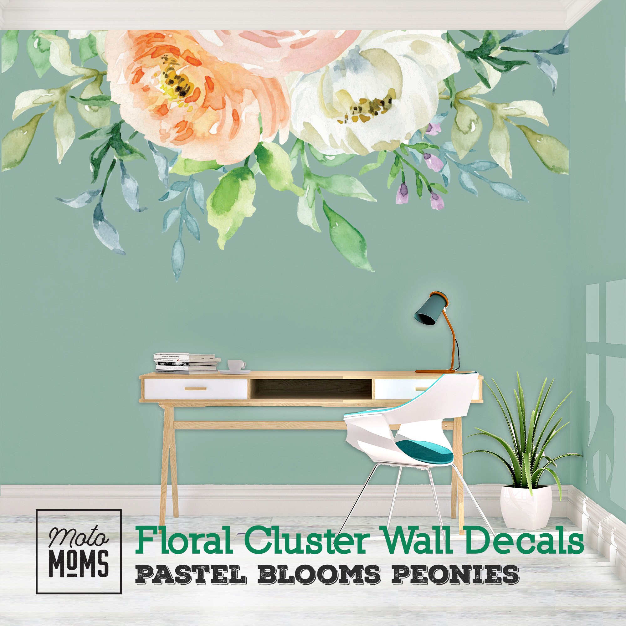 Abigail Blooms Watercolor Flowers Wall Mural Pastel White Etsy Uk
